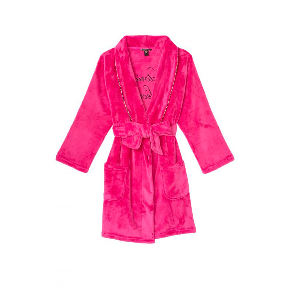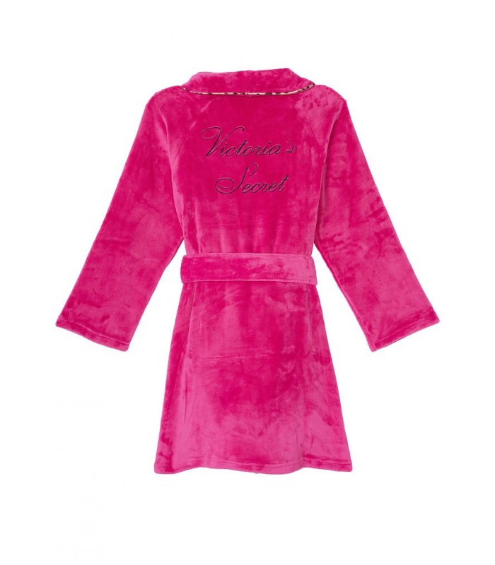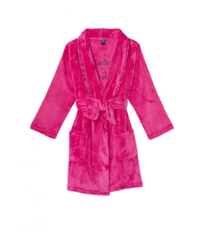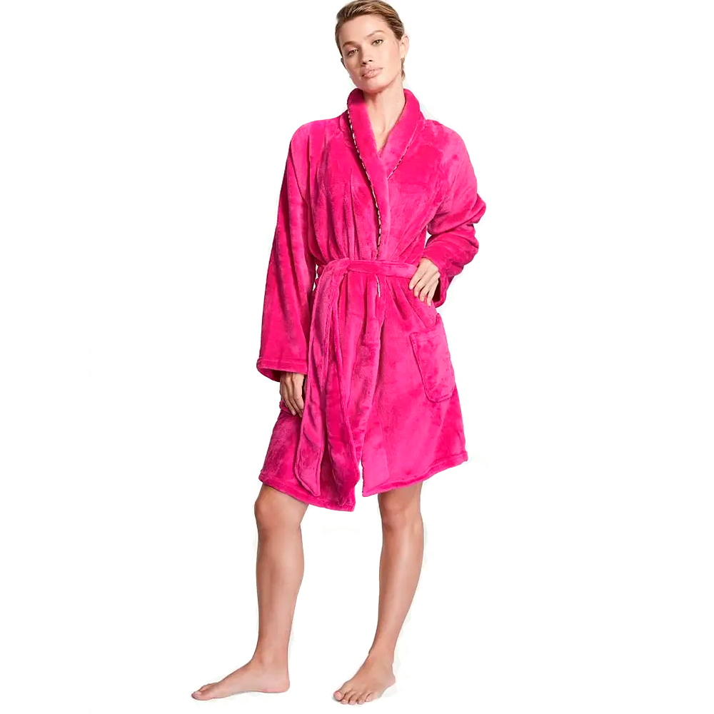 Una bata muy abrigada pensada para mimarse, con cuello chal, cintura anudada y bolsillos delanteros. Acogedora fabricación de felpa. Se ajusta a la talla real Detalles VS grabados en colores selectos.