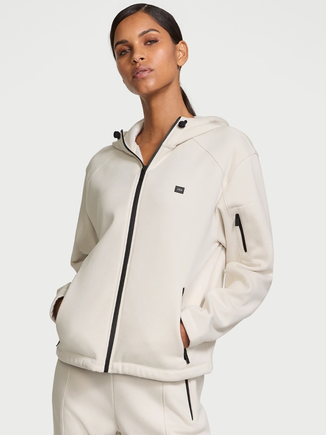 - Capucha con cordones ajustables
