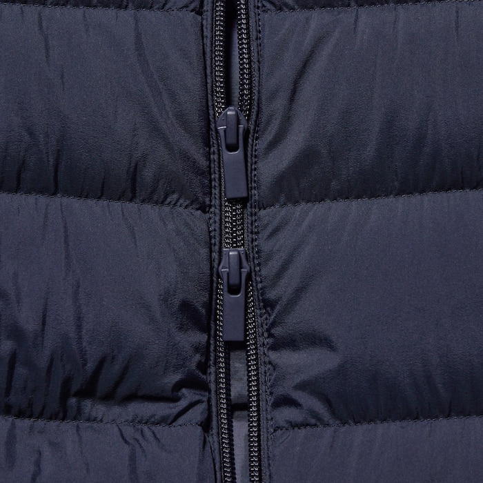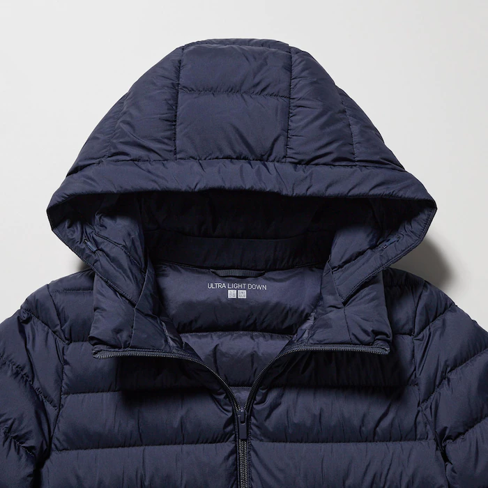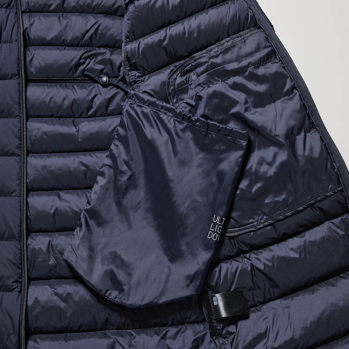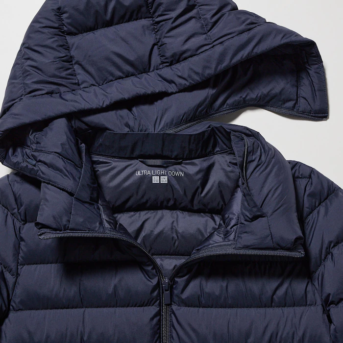 - Capucha desmontable que se guarda dentro del cuello alto para un look más elegante.