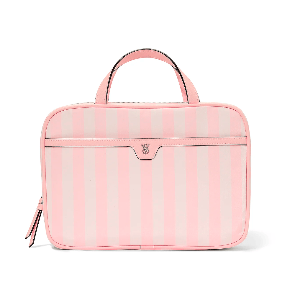 ¡En marcha, listos! Este elegante estuche contiene todo lo que puedas necesitar. Mantén todo organizado en tu bolso de viaje, desde fragancias hasta productos para el cuidado del cabello, con un gancho opcional para colgarlo mientras te preparas.