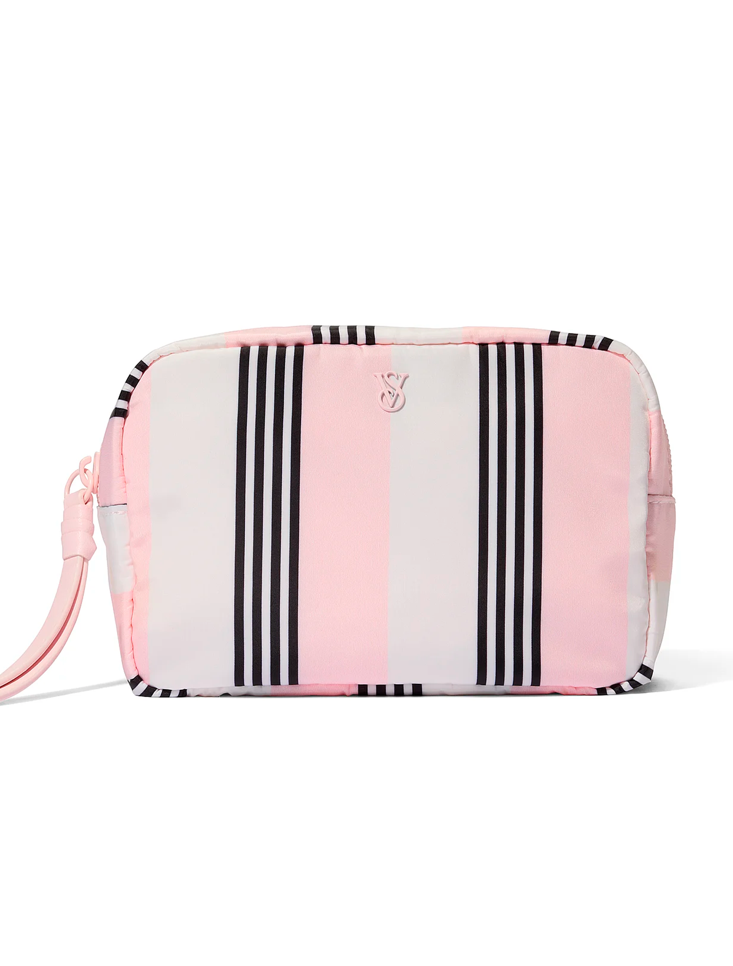 Lleva el glamour contigo a todas partes de la manera más sencilla. Este neceser de la colección Heritage Stripe es el accesorio ideal para organizar tus esenciales, destacando por su diseño sofisticado adornado con el emblemático monograma de VS.