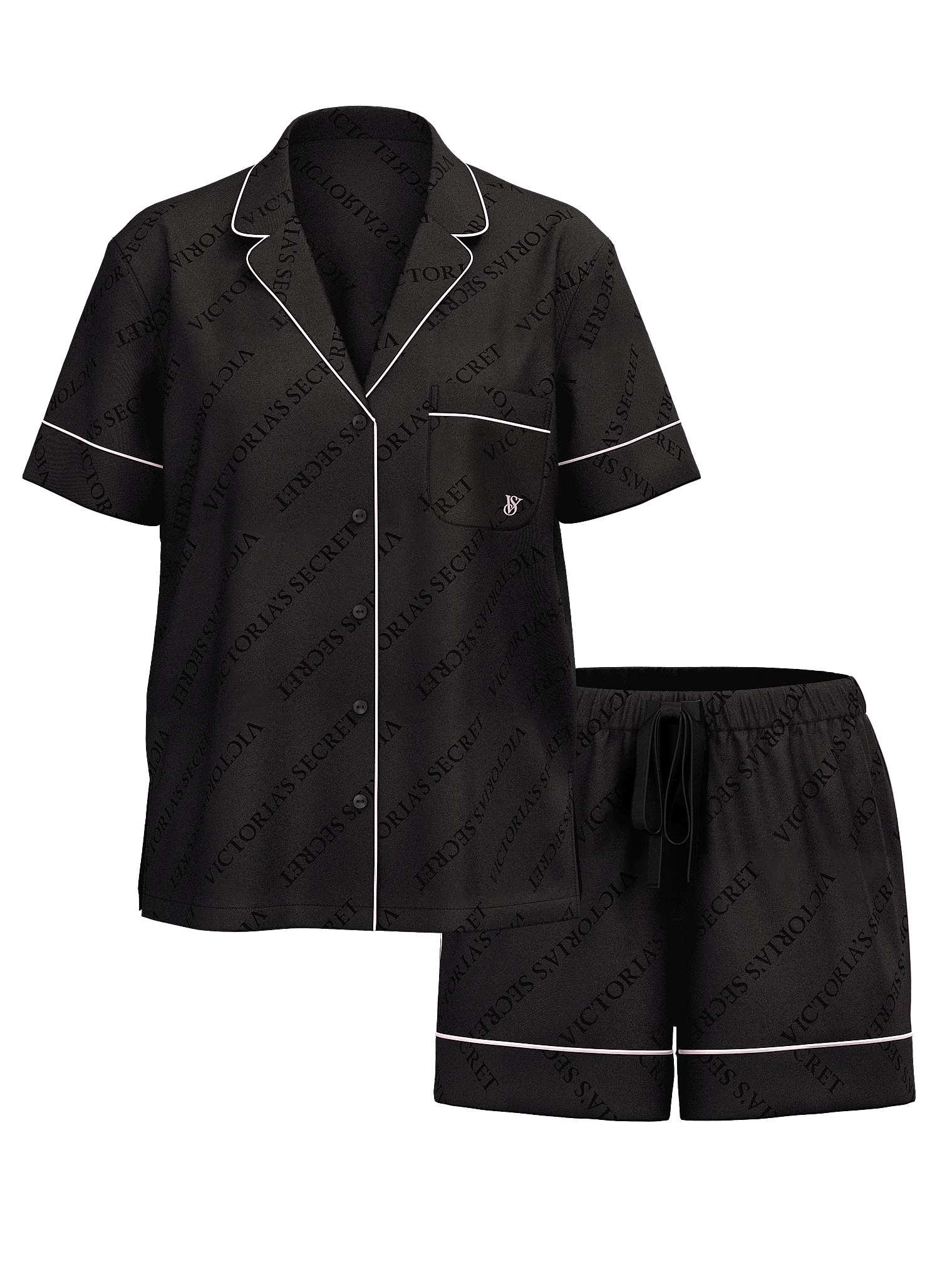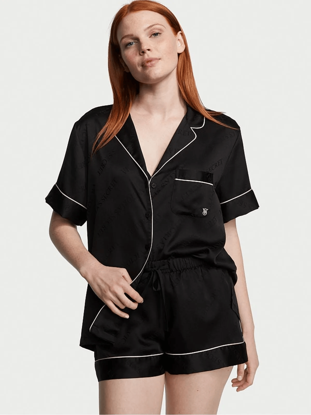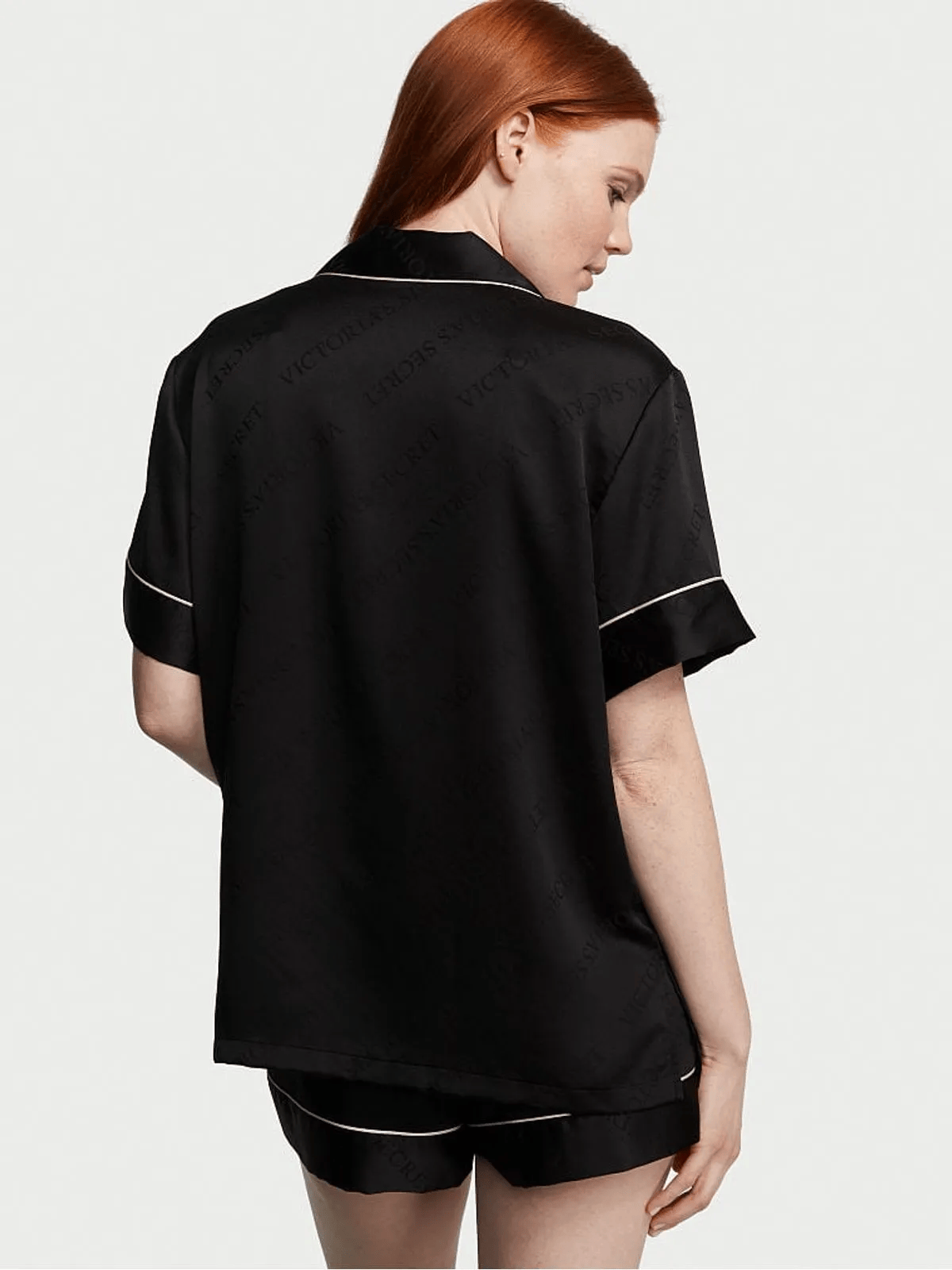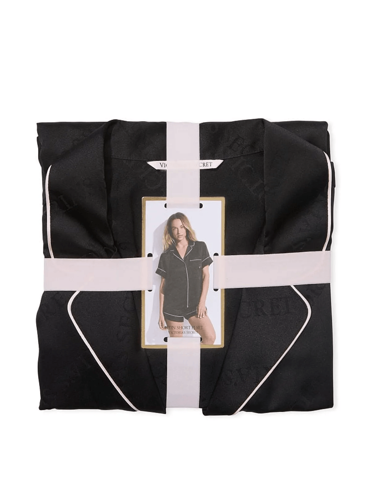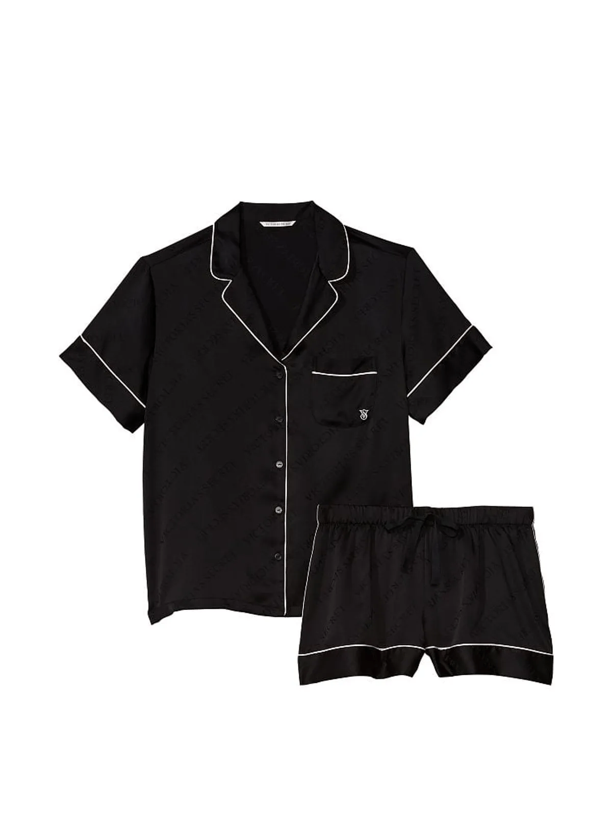Pijama Corto Victoria's Secret Satín Negro Logo