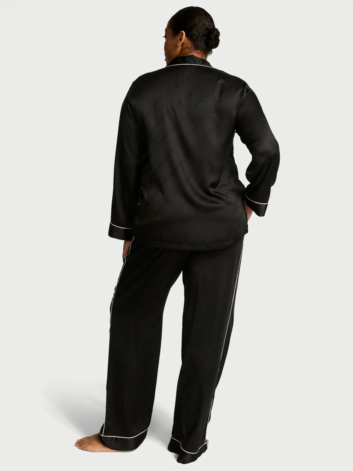 Pijama Victoria's Secret Satín Negro Logo Bolsillo
