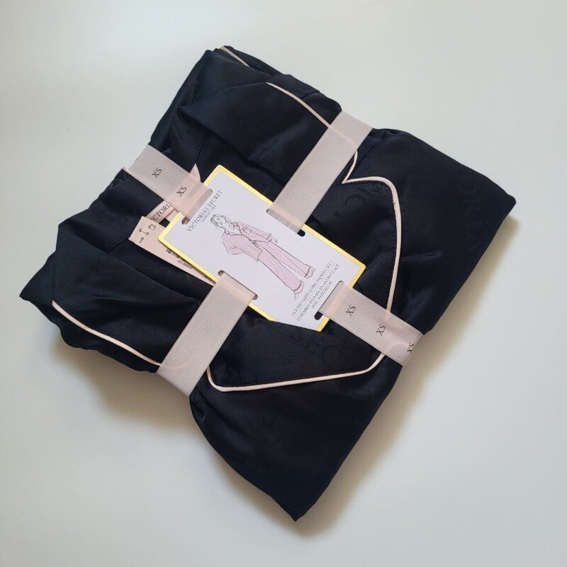 Pijama Victoria's Secret Satín Negro Logo Bolsillo - Imagen 8