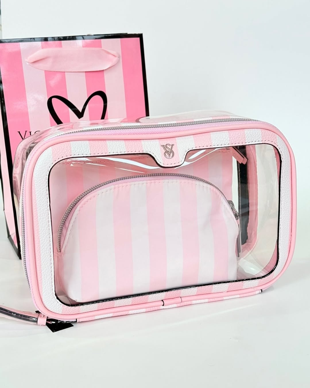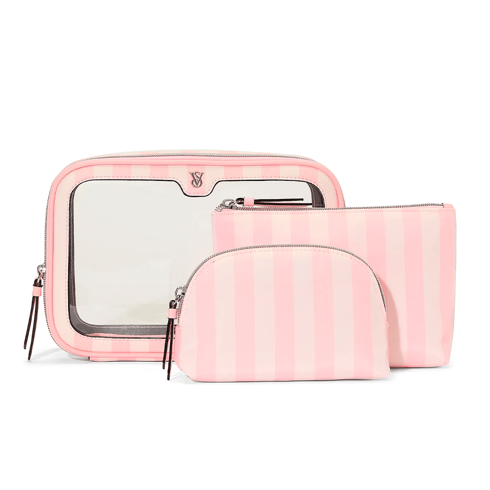 El triple de glamour. Este exclusivo trío de neceseres en forma de V se adapta a todo lo que puedas necesitar. Juntas o por separado, el exterior transparente te ayuda a encontrar rápidamente lo que buscas.