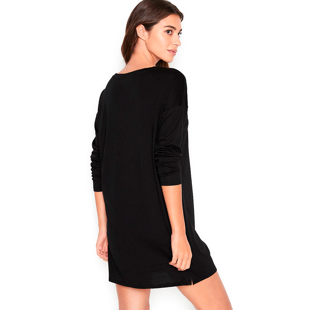 Si lo que buscas es la comodidad sin esfuerzo, no busques más! Esta remera de dormir holgada de manga larga con una silueta larga es la solución.