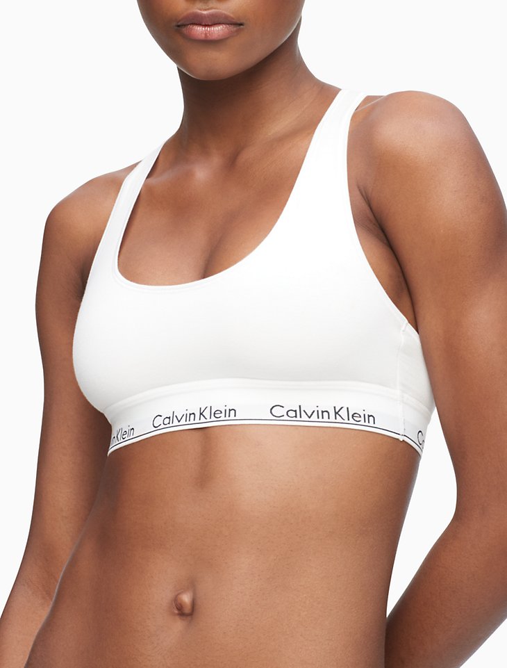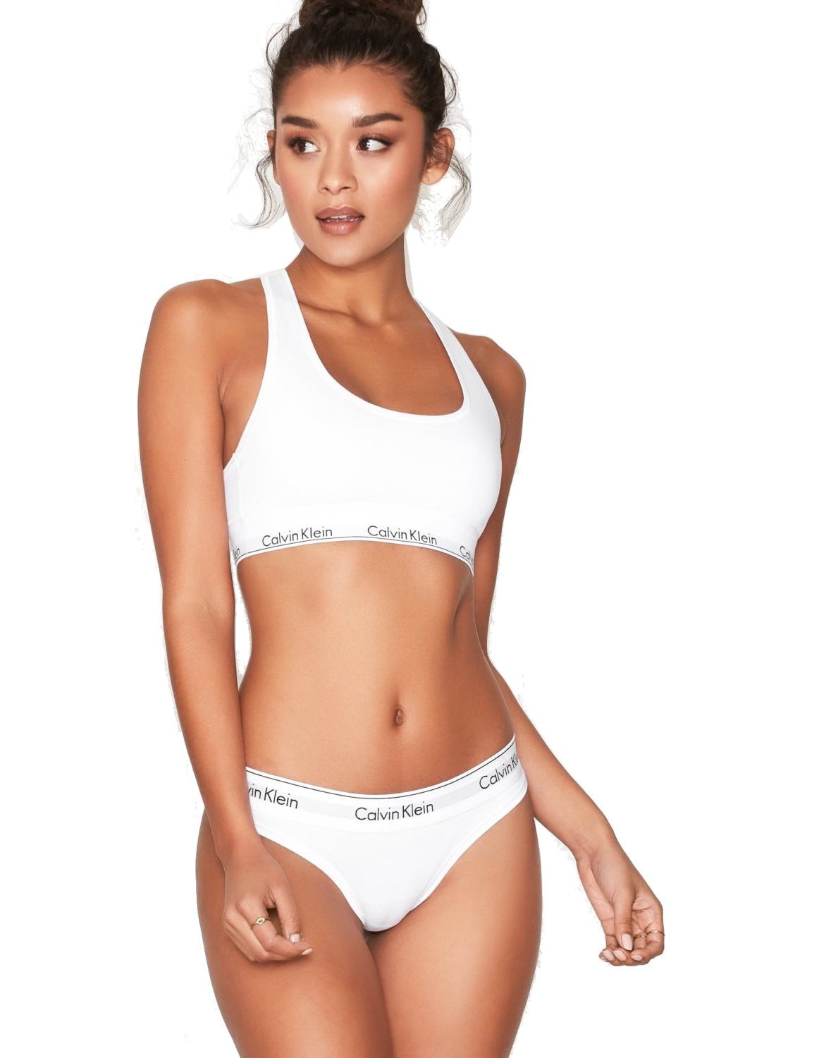 Un moderno top de algodón con una banda ancha con logo elástico, tejido elástico suave y correas de espalda.
